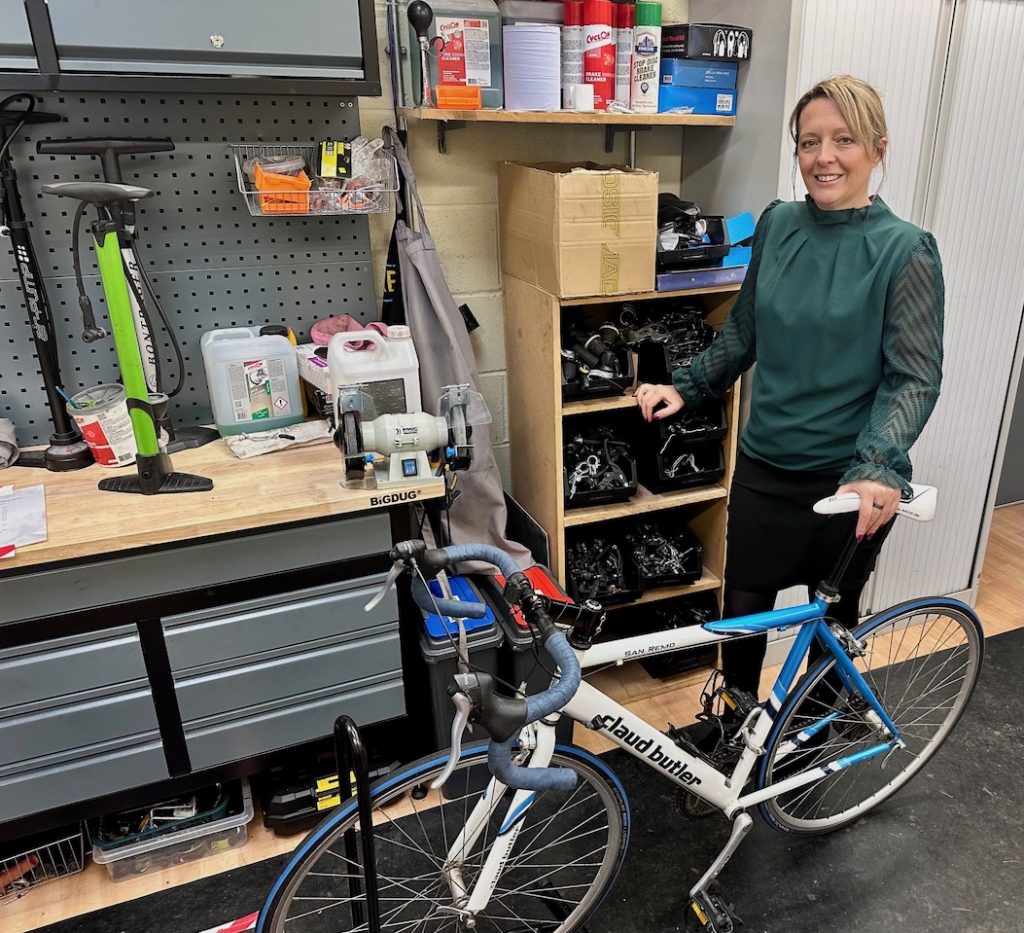 Photo: Michelle with one of the refurbished cycles (Highlights PR)